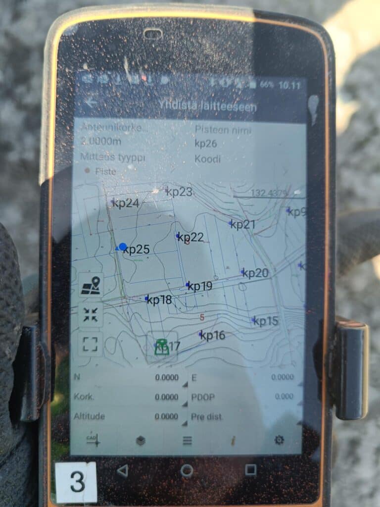 - Nykyisen maanpinnan korkeuksien mittaukset ja merkinnät GPS-mittalaitteella tai takymetrillä.